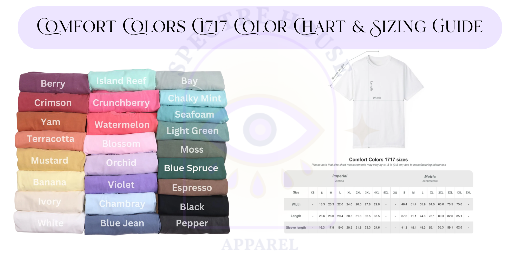 Made with 100% ring-spun US cotton, this Comfort Colors tee is soft-washed for a vintage feel and built to last. The relaxed fit drapes effortlessly - never too tight, never too boxy - making it perfect for layering, lounging, or casting spells in style. Pre-shrunk for consistent sizing and ethically dyed in rich, moody hues that hold up wash after wash.